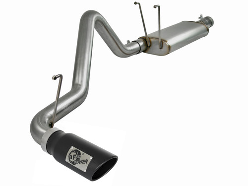 This MACH Force-Xp Cat-Back exhaust is constructed of 3" mandrel-bent 409 stainless steel and comes complete with free-flowing muffler, tubing, OE style bayonet hangers, band clamps and all hardware necessary for a hassle-free installation. The smooth curves and increased diameter of this exhaust system helps remove restriction and keeps exhaust gas flowing smoothly for increased horsepower and torque. The system is finished off with a black 304 stainless steel, rolled slash cut tip for an aggressive style.