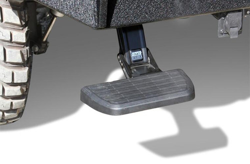 Not to mention knee and back saver. Strong and rugged, this non-slip, retractable bumper step quickly flips down with the nudge of a foot providing a faster, easier and safer way to load or unload your pickup's cargo. Supports up to 300 lbs. Frame-mounts, under the rear bumper so it works even with an open tailgate or when towing. BEDSTEP is made in the USA and backed by a 3 year-26,000 mile warranty. The AMP Research BedStep is designed to perform flawlessly in snow, ice, dust, mud and dirt. This lightweight, yet rock-solid bumper step assist employs a rugged die-cast aluminum alloy linkage assembly that is crafted in the USA, and black-anodized and PTFE powder-coated for maximum corrosion protection. Precision, stainless-steel hinge points and press-fit bushings ensure trouble-free action and reliable, maintenance-free operation for decades. Die-cast-aluminum alloy linkage components and precision-machined pivot points give BedStep rock-solid stability, and PTFE powder-coating ensures years of trouble-free, corrosion-proof operation. The ridged, non-slip step is molded of strong glass-reinforced resin, for safe footing even in mud, snow or ice. Compatible with some factory bumpers and aftermarket bumpers Go ahead and step on it. Bedstep? is a real time saver. Not to mention knee and back saver. Strong and rugged, this non-slip, retractable bumper step quickly flips down with the nudge of a foot providing a faster, easier and safer way to load or unload your pickup?s cargo. Supports up to 300 lbs. Frame mounts under the rear bumper so it works even with an open tailgate or when towing. Compatible with some factory and aftermarket bumpers.