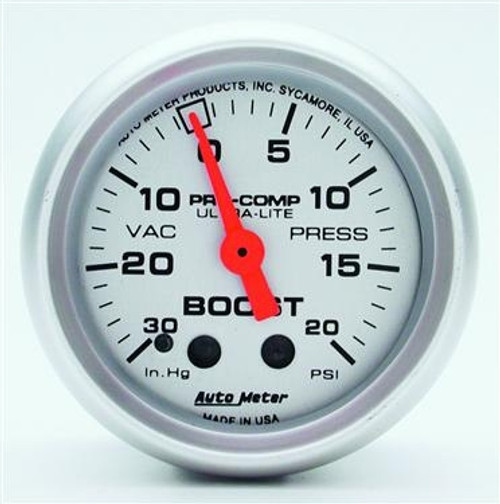Bronze bourdon tube 270 Degree sweep movements and durable nylon gearing have made these rugged and long lasting gauges a proven high performance favorite for over 25 Years. These mechanical gauges require no electrical power for operation making them an ideal choice for vehicles with no or low powered electrical systems. Size (IN):2-1/16 Inch Type:Mechanical Range:0 To 30 Inch Hg To Vacuum/20 Pounds Per Square Inch Display:Analog Sweep:Full Sweep Face Color:White Needle Color:Orange Number Color:Black Lighting:Incandescent Liquid-Filled:No Includes Warning Indicator:No Warning Indicator Type:N/A Includes Peak Memory:No Includes Sending Unit:No Includes Wiring Harness:No Includes Fittings:Yes