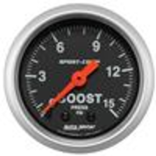Mechanical boost gauges have become the staple in boost pressure monitoring for all types of engines, gasoline, diesel, or otherwise. Ultra-precise bourdon tube meter movement ensures accuracy and durability not seen anywhere else in the industry. A simple 1/8? NPT pressure connection requires no electrical hookup for operation. Includes 1/8? NPT fittings and nylon line kit. Traditional incandescent lighting illuminates around the perimeter of the dial SPORT-COMP