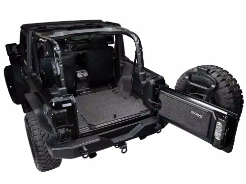Tailor made for a perfect fit in your Wrangler, the BedRug Floor delivers wall–to–wall coverage and looks like it was installed at the factory. Speaking of installing, about 30 minutes is all it takes to dress your dune surfer with hook and loop fasteners. Once it's in place, its plush pile also helps block heat and noise from creeping up into your cockpit. And, when it gets gunked up, just pull the pieces out and hose them down.