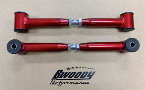 BWoody Performance WK1 Upgraded Rear Lower Control Arms, Manufactured from .133" wall a 36 steel with upgraded Delrin bushings these come in at 2.5 lbs. lighter per side then OEM, so not only stronger but lighter too!!! Simply designed for one purpose in mind whether your tearing up laps at summit point or ripping up asphalt at your local dragstrip too keep the rear tires planted. OEM lower control arms are weak rubber and we've been seeing many come in dry rotted and falling apart. Our test results have shown a consistent .07-.09 drop in 60 ft times spraying a 100 shot of nitrous out of the hole. What are you waiting for???? Order yours today!!!
