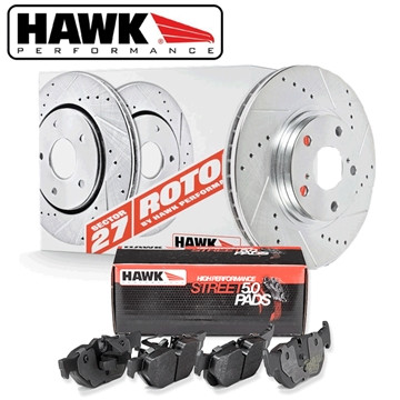 Sector 27 Rotors and High Performance Street 5.0 Pads Rear Brake Kit (HK4469.194B) by Hawk¨. FMSI: D1053. The new Sector 27 Rotors and High Performance Street 5.0 Pads are a Ferro-Carbon compound brake pads that provide advanced braking characteristics to enhance the driving experience. This new compound combines the safety and quality of aerospace design partnered with the braking technology of motorsports, the results are shorter stopping distances, improved performance under heavy braking conditions and street car friendly characteristics. Ideal for performance street driven cars, the new Sector 27 Rotors come in drilled and slotted design, which provides improved stopping power along with reduced brake fade in the most extreme conditions.