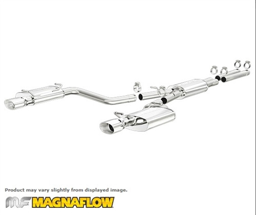 SOUND. The Magnaflow Catback Exhaust System are designed and tested by Magnaflow to give your HEMI a deep, throaty but smooth tone at all RPM's. At idle and cruise speeds it will not be much louder than stock in most cases, but step on it, and it will become more aggressively toned, while not becoming overbearing and keeping the passenger compartment drone to a minimum.