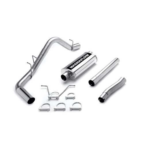 Made in the USA and engineered to last, for those seeking increased performance and better economy, MagnaFlow MF Series Performance Exhaust systems deliver the smooth deep sound you want and the wide-open performance power you need. Our exhaust systems feature straight-through flow designs for the ultimate in unrestricted horsepower and torque for big power while maintaining exhaust efficiency. These systems are an engineered balance of interior and exterior noise levels and are tested against SAE j1169 standards. MF Series Performance Cat-Back Exhaust System; 3 in.; Incl. Tubing/5x8x18 in. Muffler/Tailpipe/3.5 in. Round Tip; Single Pass. Side Rear; Stainless; The Street Series Performance Exhaust system delivers dyno proven power with a comfortable interior sound and performance exterior sound.
