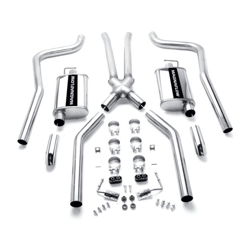 Made in the USA and engineered to last, for those seeking increased performance and better economy, MagnaFlow Touring Series Performance Exhaust systems deliver the smooth deep sound you want and the wide-open performance power you need. Our exhaust systems feature straight-through flow designs for the ultimate in unrestricted horsepower and torque for big power while maintaining exhaust efficiency. These systems are an engineered balance of interior and exterior noise levels and are tested against SAE j1169 standards. Street Series Performance Crossmember-Back Exhaust System; 2.5in.; Incl. Tubing/Tru-X Assy/Dual 4x9x14in. Muffler/Tailpipes/Dual 2.75in. Round Tips; DualSplitRearExit; Stainless; The Street Series Stainless Performance Exhaust system delivers dyno proven power with a comfortable interior sound and performance exterior sound.