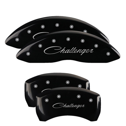 MGP 12181SCLSBK Single Piston Caliper Covers Black with Challenger Cursive Logo for 11-23 Challenger 3.6L & 5.7L HEMI