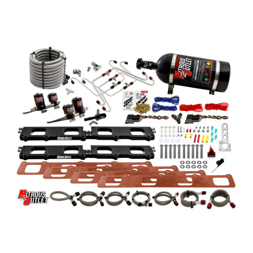 This package includes the CNC machined blower nitrous plates with solenoids, Whipple 3.0 blower specific solenoid brackets, main feed-line, braided hoses, hard-lines, O-rings, fuel adapter, wiring, hardware, and everything else needed for installation.
