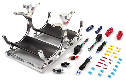 This heated billet bottle bracket will hold two of any brand 10lb or 15lb nitrous bottles and can be installed in any make. model, or year vehicle with any brand nitrous system. This bracket holds the nitrous bottle upside down, eliminating the need for a siphon tube.