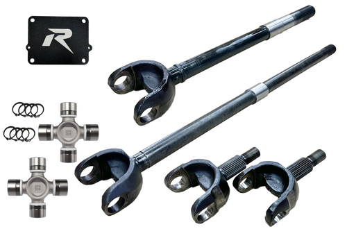 Revolution Gear and Axle Discovery Series 4340 Chromoly Front Axle Kit, fits 2018+ Jeep Wrangler JL and Gladiator JT models with Dana 44/M210 wide-track front axle, only works with the factory 32 spline locker. This front axle kit was developed with a single passenger side inner axle to eliminate the front axle disconnect (FAD) and intermediate axle creating the strongest setup. We added even more strength by utilizing larger Spicer 1410X u-joints.