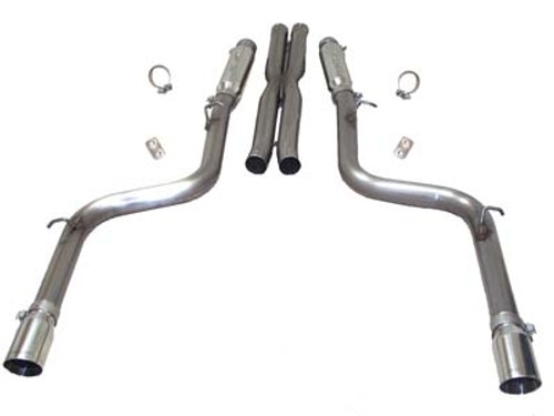 Bolt-on some serious power with a SLP Cat-Back Exhaust System. Now available from SLP is the stainless steel, Cat-Back Modular Exhaust System for the 6.1L/6.4L Hemi powered 2005-2013 Charger SRT-8, 2006-2008 Magnum SRT-8 and 2005-2010 Chrysler 300 SRT-8. It is available in Loud Mouth II¨ and Loud Mouth¨ designs. Thanks to the modular design, either mufflers or resonators can be ordered individually and interchanged separately. These systems provide a noticeable performance gain of up to 12 horsepower and were designed using SLP's innovative modular technology. This enables customers the flexibility to change the performance and noise-level characteristics by switching from our bullet-style Loud Mouth II mufflers, to our more aggressive bullet-style Loud Mouth resonators, in order to suit their individual requirements. Each system is constructed from 3" stainless steel mandrel-bent tubing, for unrestricted flow with a integrated PowerFlo-X¨ crossover pipe that will bolt to the factory 2.75" down pipes. Also, included is a pair of 4" double-wall polished tips w/SLP logo. Easy bolt-on installation and all hardware and installation instructions are included, backed by SLP's Lifetime Warranty. NOTE: This exhaust produces less back pressure then the stock exhaust. Because of the reduced back pressure some 6.4L SRT-8 cars might display the SES light. Until tuning is avaiable this light will remain on. NOTE: If upgrading to our Long Tube Headers use part# D30003/D30003A/D30007 with 2.75" outlet down-pipes.