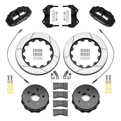 Forged Narrow Superlite 4R four piston calipers are combined with BP-10 compound pads and 13.5” rotors in this group of big brake kits for custom high-performance street and show machines. This specialized kit for Jeep Wrangler retains full use of the OE parking brake, master cylinder output, and ABS where used. FNSL4R rear kits provide complimentary style and performance with 13” and larger front brake upgrades in conjunction with wheel, tire, and suspension upgrades.